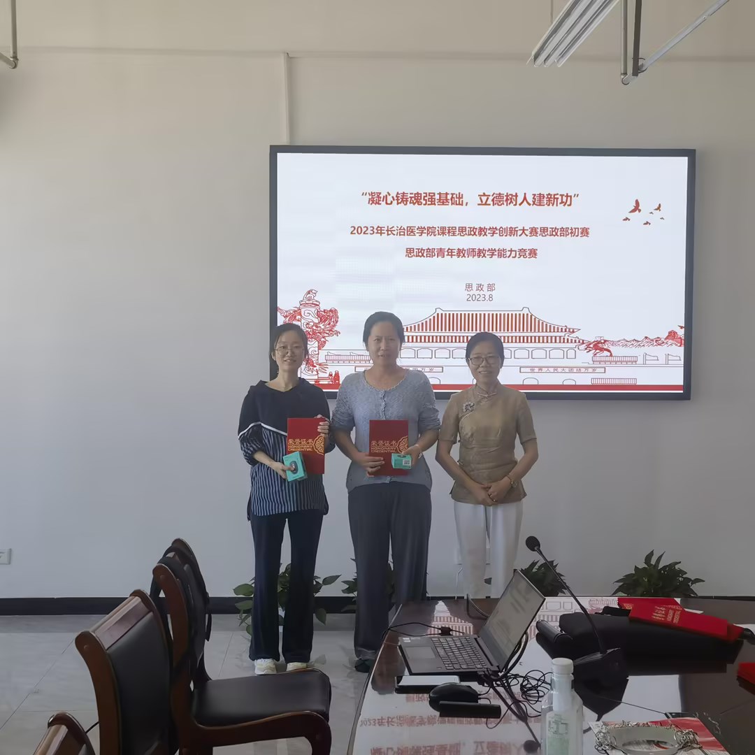 教研室主任作为评委从参赛选题、教学内容深化、教学设计规范、教学感染力、教学特色等方面进行了点评、指导。梁建君书记作总结发言,指出这次比赛充分体现了思政部教师的先进思想、理论素养、教学理念和使命担当,是进一步推进学习贯彻习近平新时代中国特色社会主义思想主题教育走深走实的重要举措,是推动长医思政课高质量发展的切实举措。