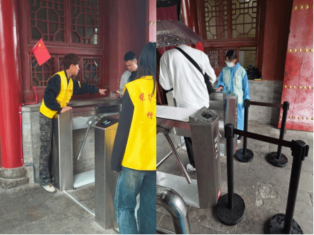为保障景区游览秩序井然,提升游客游玩体验,志愿者们提前到岗,迅速投入到志愿服务工作中。在景区入口处,他们协助工作人员疏导人流,指引游客有序入园,耐心解答游客关于购票流程、开放时间的疑问;在景区内部,志愿者们化身“活地图”,为游客详细介绍景点历史渊源、游览路线及周边配套设施,帮助游客精准找到打卡点位;针对老年游客、儿童等特殊群体,志愿者们更是格外关注,主动提供搀扶、饮水、物品寄存等便民服务,用细心与耐心温暖着每一位游客。