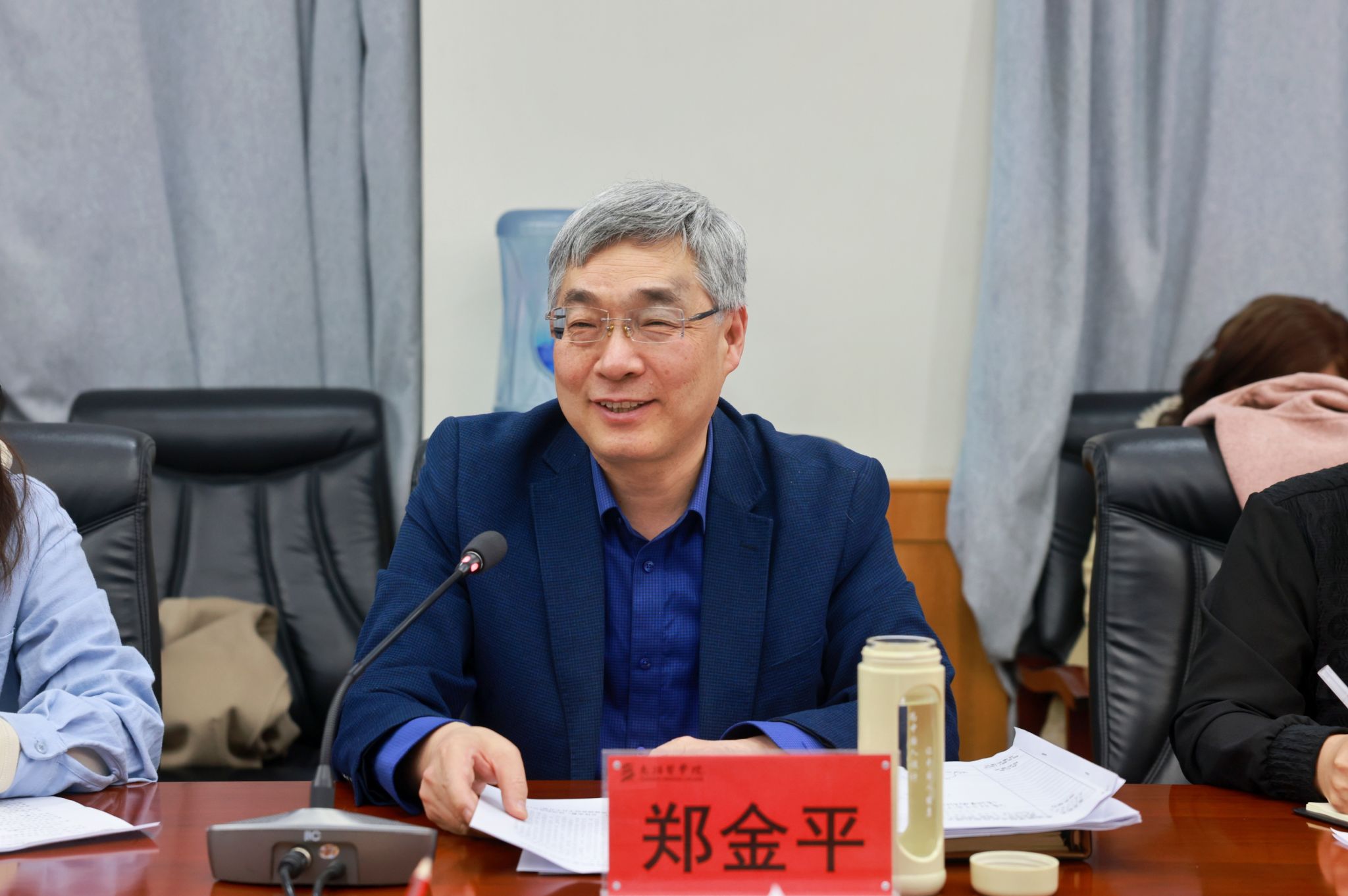 郑金平强调,立德树人是高校的根本任务,更是一项系统性育人工程。全校上下要坚持协同发力,持续推进“思政课堂”与“社会课堂”有机融合,推动“课程思政”与“思政课程”同向同行,实现思想教育、专业教育与创新创业教育一体化设计、全方位渗透,切实推动学校思想政治工作迈上新台阶,助力学校高质量育人工作走深走实。